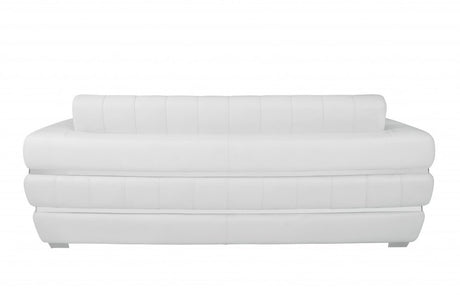 89" White Italian Leather Sofa With Silver Legs