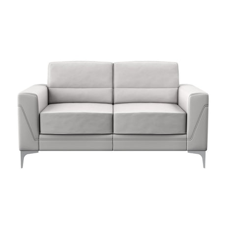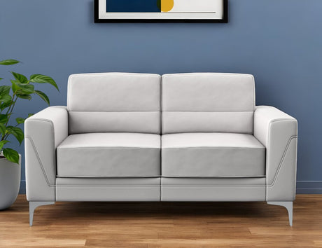 63" Light Gray And Silver Faux Leather Loveseat