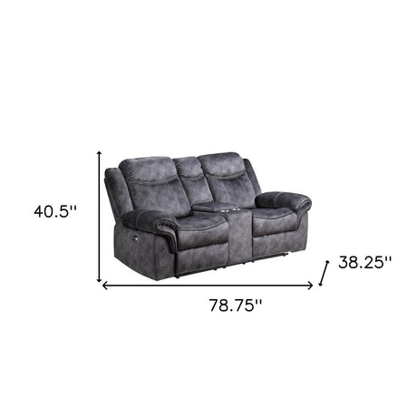 79" Dark Gray Microfiber Power Reclining Loveseat With Storage