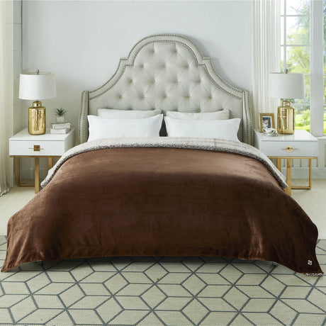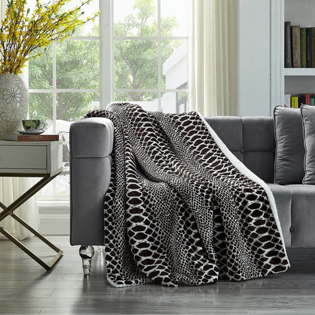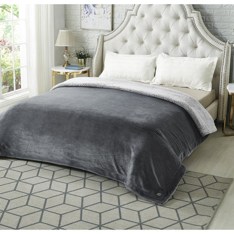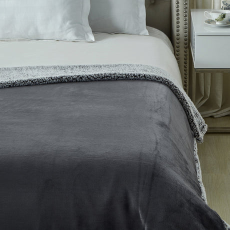 Zakary Flannel Reversible Heathered Sherpa Throw Blanket