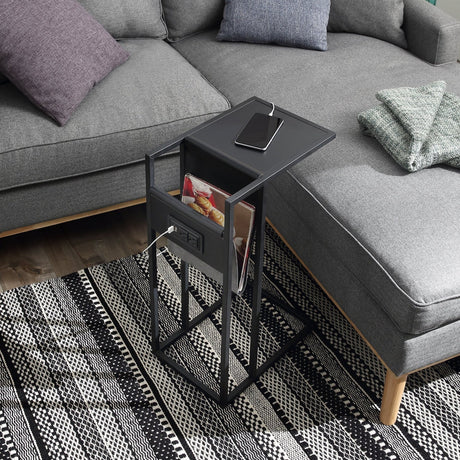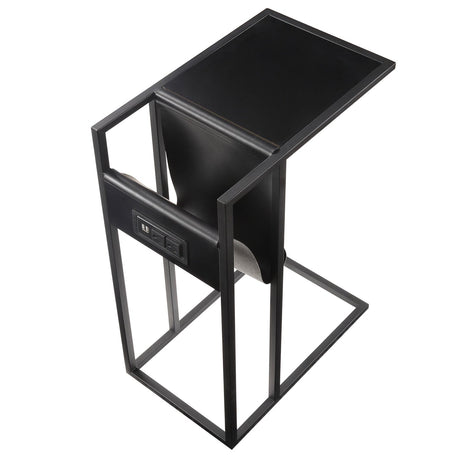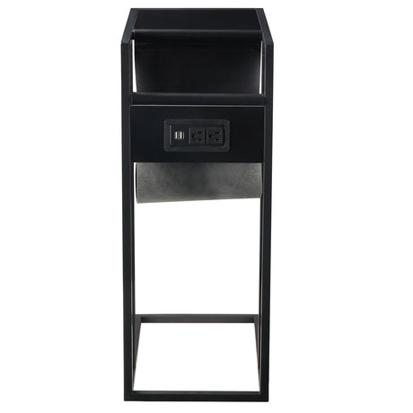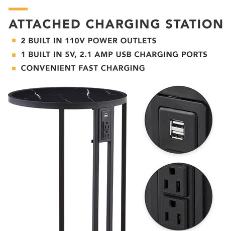 3-Piece Home Bar Set with 2 Upholstered Bar Stools Outlets and USB Ports-Black