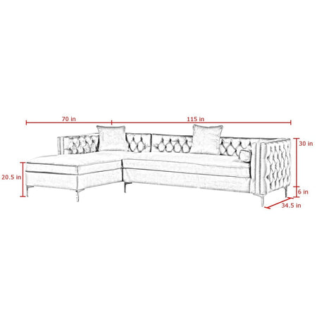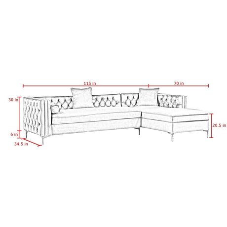 Giovanni Velvet Chaise Sectional Sofa with Storage