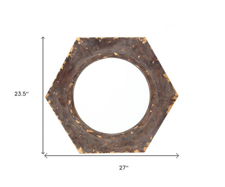 24" Bronze Hexagon Distressed Wood Framed Accent Mirror