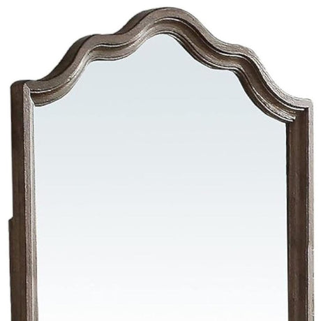 47" Brown Crowned Top Solid Wood Framed Mounted Dresser Mirror