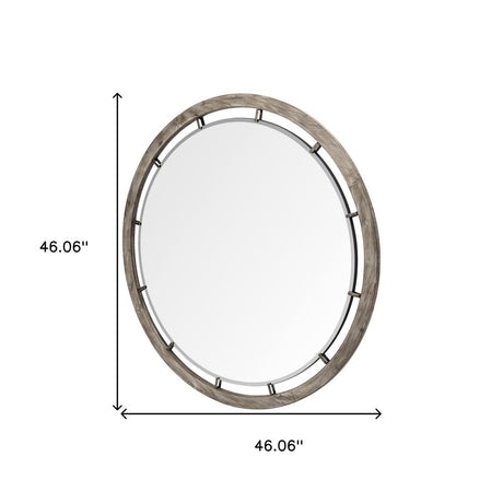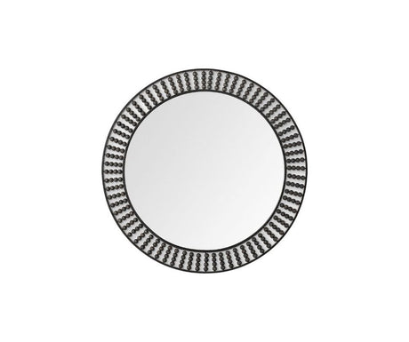 42" Round Black Metal Frame Wall Mirror With Wood Beads