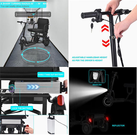 MotoTec Folding Mobility Electric Trike 48v 700w Dual Motor Lithium Black