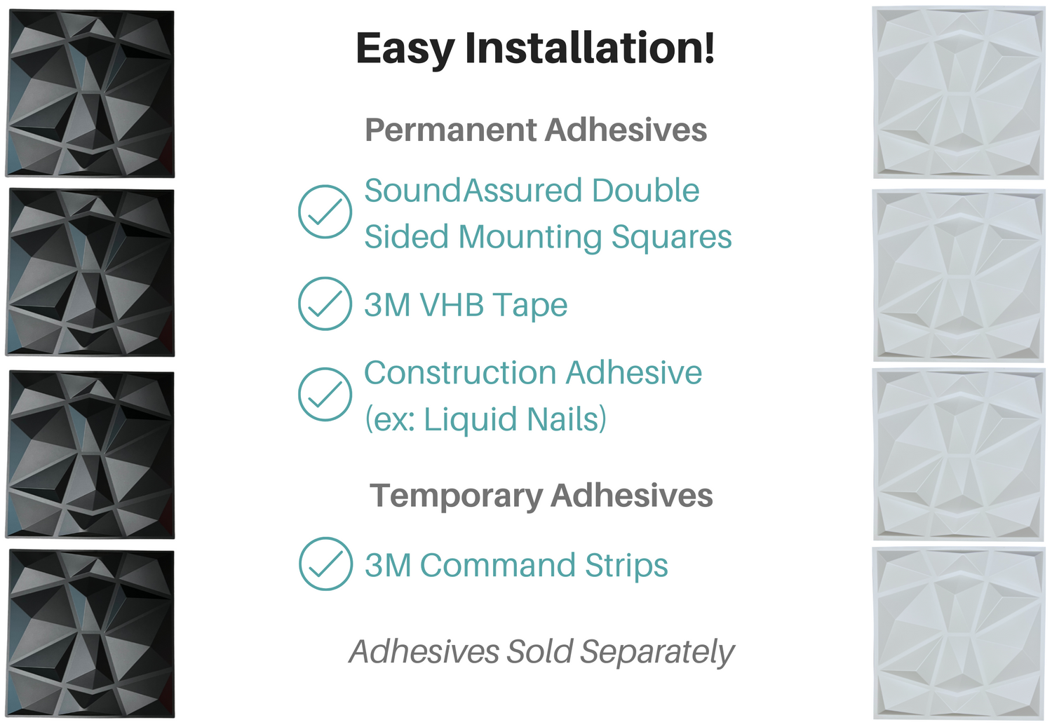 These lightweight PVC acoustic diffusers can be mounted for permanent or temporary use. Adhesives sold separately. Installation is a breeze.