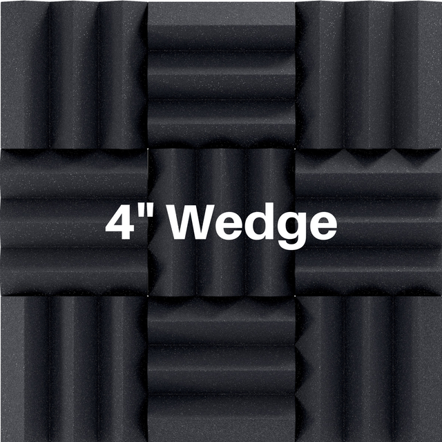 4 inch thick acoustic foam panels - multiple sizes available - 12x12 inches, 24x24 inches, 24x48 inches, 48x72 inches48 packs and 2 packs acoustic foam wedge panels - case quantities4x12x12 wedge acoustic foam - Third-party Acoustic absorption ratings for soundproofing Acoustic studio foam - from Riverbank acoustic laboratories4 inch thickness - Benefits of acoustic soundproofing foam – specifically made to dampen noise, long lasting high-quality formula, easy to install studio foamColors may appear different on screens due to lighting and display settings. We do our best to show accurate colors, but variations can occur. If unsure, we recommend ordering a swatch pack before purchasing a full case.SoundAssured Acoustic Foam Color Chart - 13 Color Options