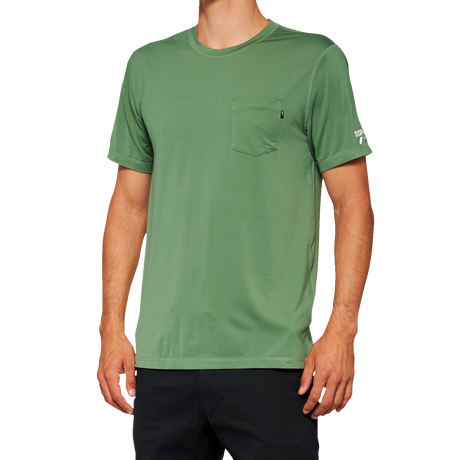100% Mission Athletic T-Shirt - Olive - Medium 20014-00016
