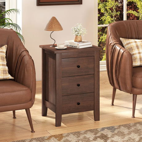 Farmhouse Nightstand with 3 Storage Drawers and Handles-Walnut