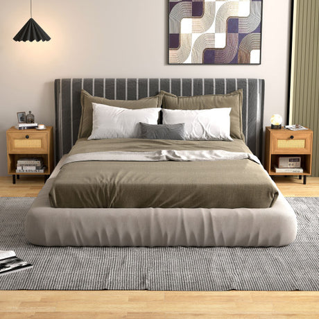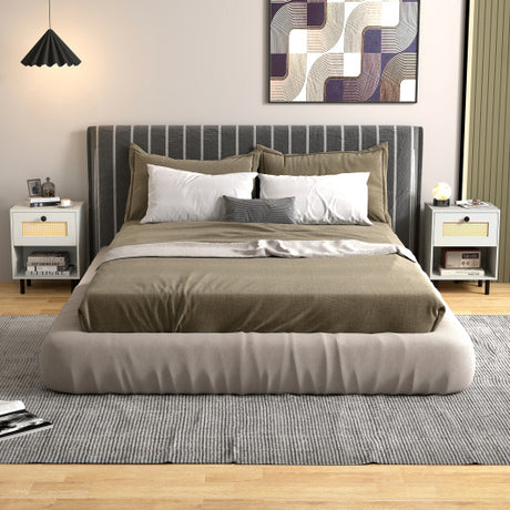 Set of 2 Modern Rattan Nightstand with Drawer and Solid Wood Legs for Bedroom and Living Room-Oak
