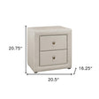 21" Beige Wood Two Drawer Nightstand is backordered and will ship as soon as it is back in stock.