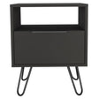 Good looking design and practical styling meet to form this 22-inch black wood nightstand. Made of high quality manufactured wood that is built to last. An easy-access shelf gives you additional storage and display space. The unsung hero of the bedroom, this nightstand is perfect for keeping a glass of water, lamp, alarm clock, jewelry, and more, close by and easily accessible. Look no further than this nightstand to accommodate all your needs and upgrade the style of your bedroom. 22.2-inch h x 17.7-inch w x 13.7-inch d.