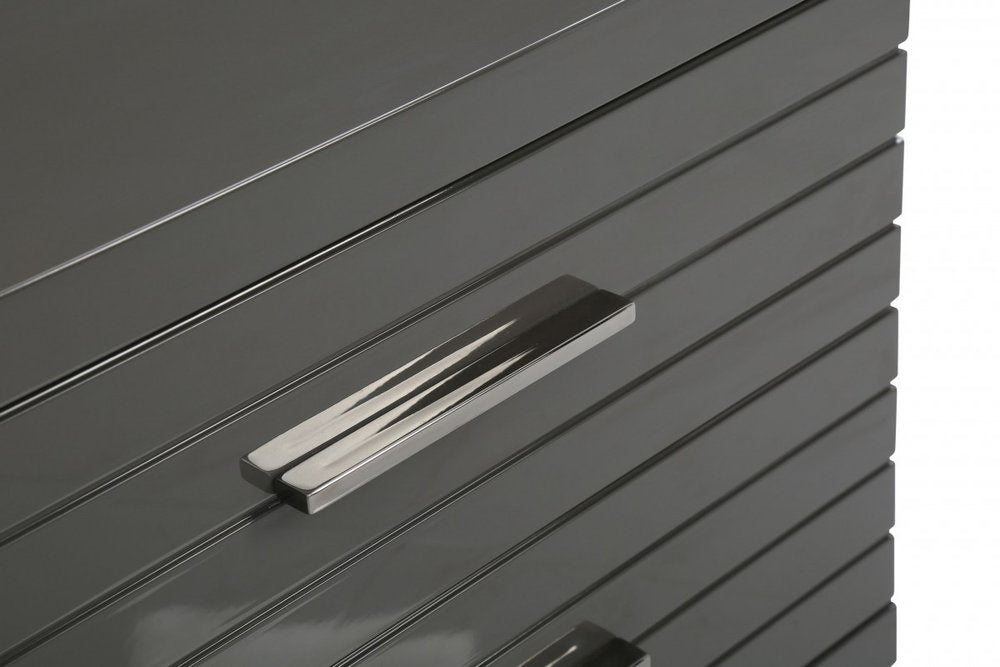 23" Silver And Gray Stainless Steel Solid and Manufactured Wood Two Drawer Nightstand