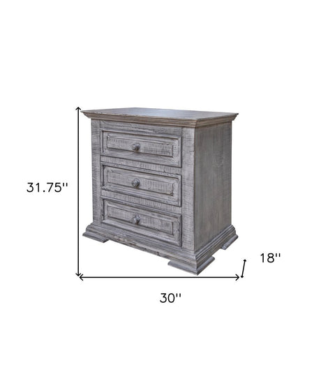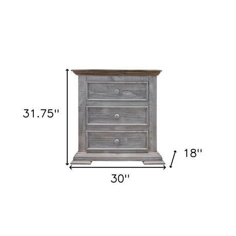 32" Gray Solid Wood Three Drawer Nightstand