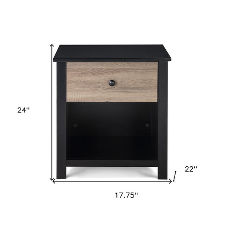 24" Black Solid Wood and Wood One Drawer Nightstand