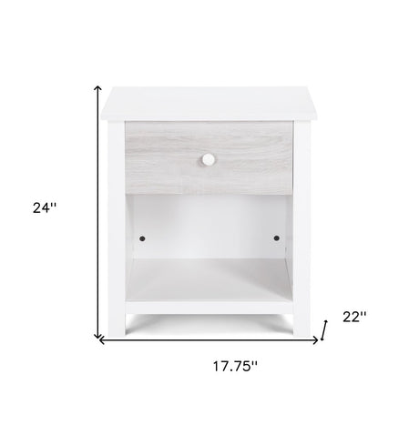 24" White Solid Manufactured Wood and Wood One Drawer Nightstand