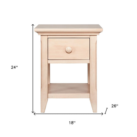 24" Sand Solid Wood Solid and Manufactured Wood One Drawer Nightstand