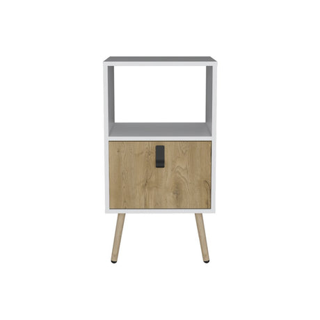 Mid Century Modern Nightstand with Open Shelves-White