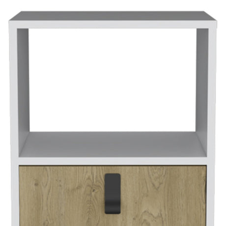 Bedside Table Nightstand with Drawer and Open Storage Shelf-Natural & White