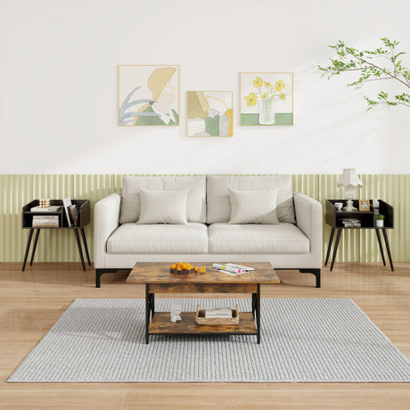 2 Tiers Nightstand with Open Storage Shelf for Living Room Bedroom-2 Pieces