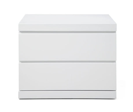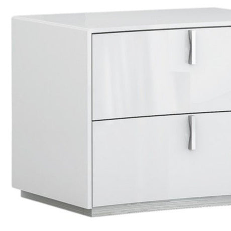 32" Antiqued White Two Drawers Mirrored Nightstand