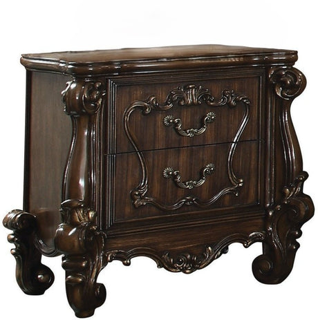 26" Brown Solid Wood and Wood Two Drawer Nightstand