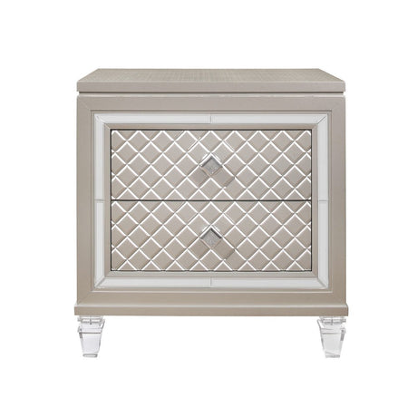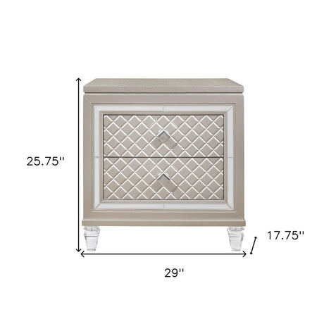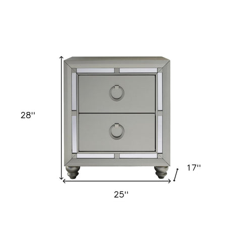 31" Gold Two Drawers Solid Wood Mirrored Nightstand