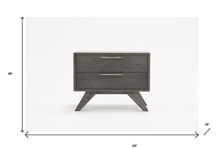 29" Dark Gray Solid Wood and Wood Two Drawer Nightstand