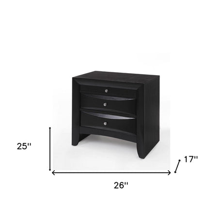 25" Dark Brown Solid Wood Three Drawer Nightstand