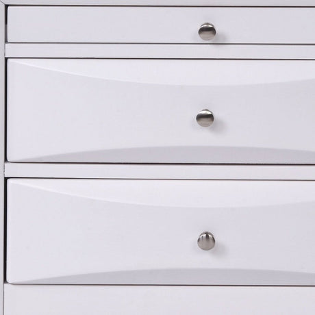 38" White Six Drawer Wood and Mirrored Glass Jewelry Armoire