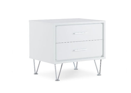 Modern Nightstand with LED Lights Sliding Drawer and Open Compartment-White