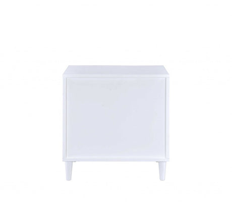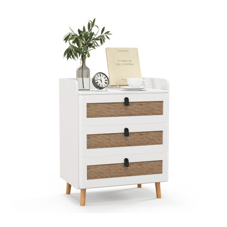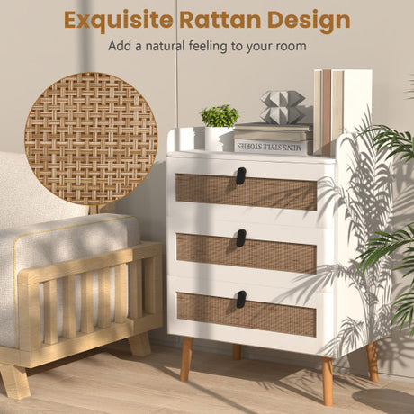 Modern End Table with 3 Rattan Decorated Drawers-White