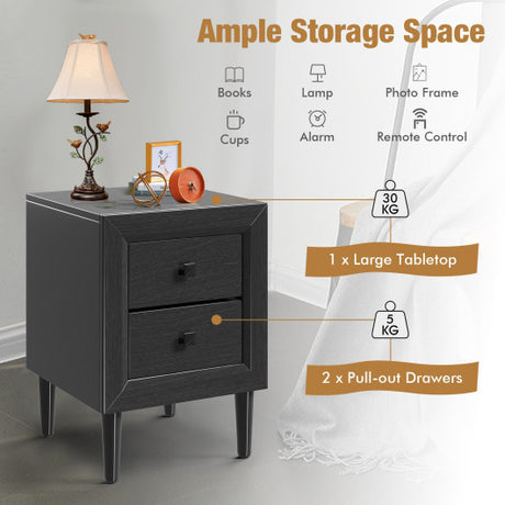 2 Pieces Multipurpose Retro Nightstand with 2 Drawers-Black