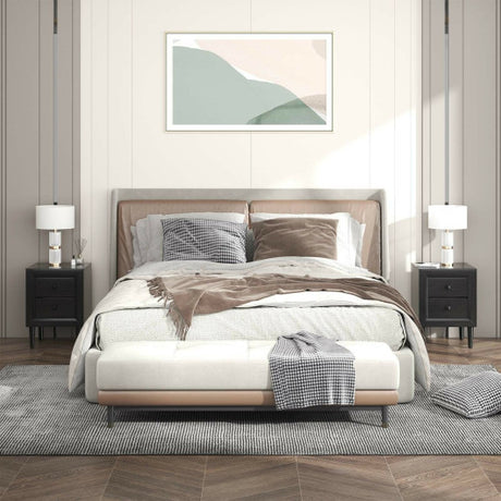 2-Drawer Nightstand with Removable Fabric Bins and Pull Handles-Black