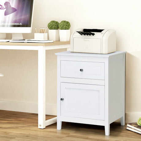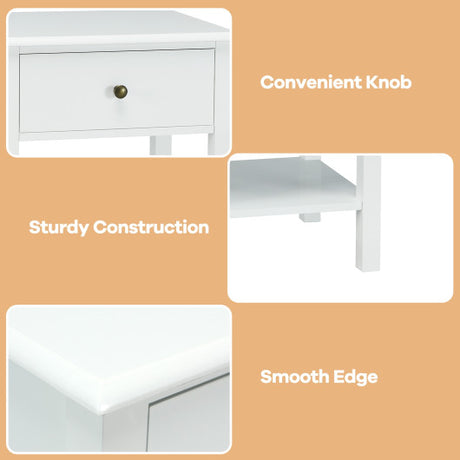 1-Drawer Modern Bedside Table with Solid Wood Legs-White