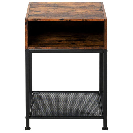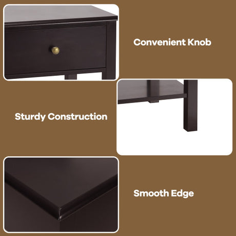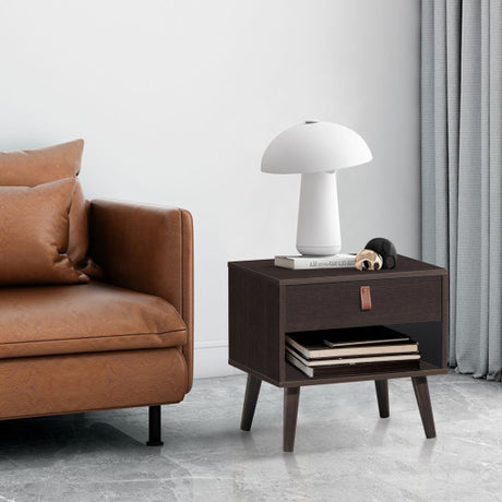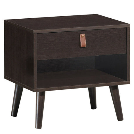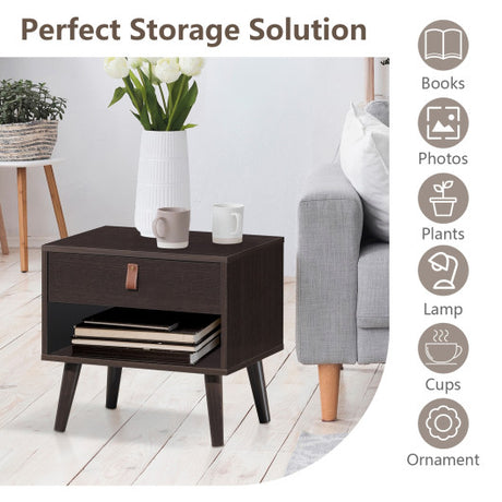 Nightstand Bedroom Table with Drawer Storage Shelf-Brown