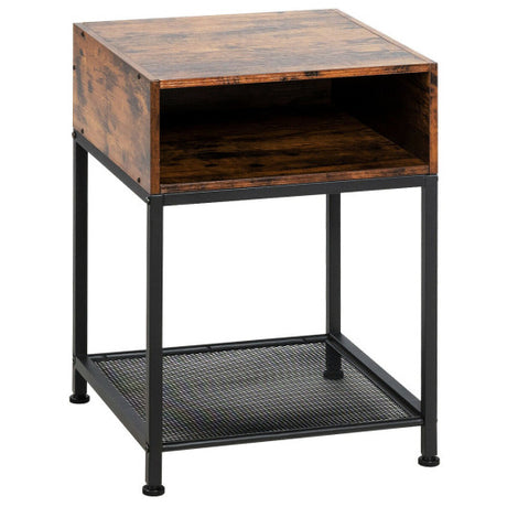 Wooden Nightstand Mid-Century End Side Table with 2 Storage Drawers-Brown