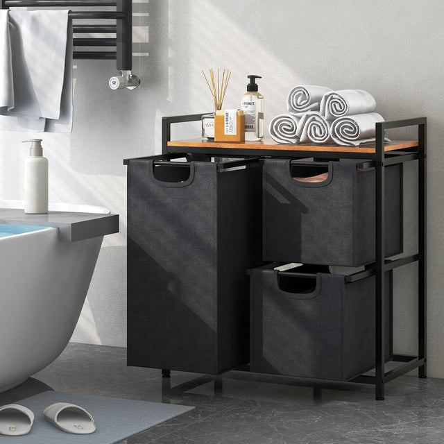 Laundry Basket Organizer Dirty Clothes Hamper with Shelf and 3 Removable Bags-Rustic Brown by DirectDeals