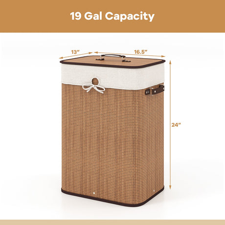 19 Gal Rectangle Laundry Basket Bamboo Clothes Hamper with Handles and Lid-Yellow