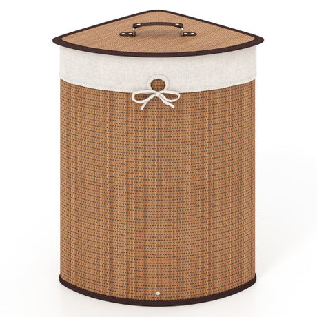 Corner Bamboo Hamper Laundry Basket-Brown by DirectDeals