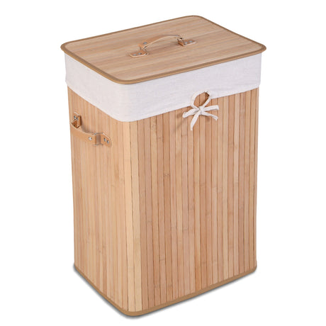 Rectangle Bamboo Hamper Laundry Basket Washing Cloth Bin Storage Bag Lid 3 color-Brown