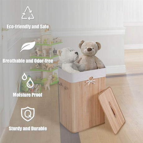 19 Gal Rectangle Laundry Basket Bamboo Clothes Hamper with Handles and Lid-Yellow by DirectDeals