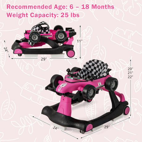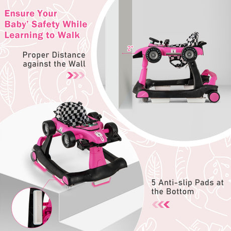 4-in-1 Foldable Activity Push Walker with Adjustable Height-Pink