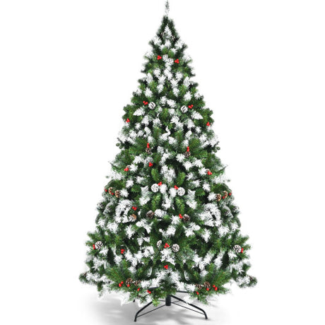 Pre-lit Snow Flocked Christmas Tree with Red Berries and LED Lights-6 ft