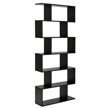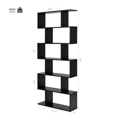 6 Tier S-Shaped Bookshelf Storage Display Bookcase Decor Z-Shelf -Black