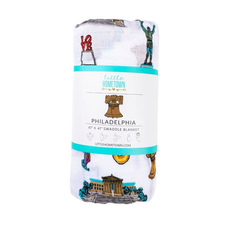 Gift Set: Philadelphia Baby Muslin Swaddle Blanket and Burp Cloth/Bib Combo by Little Hometown