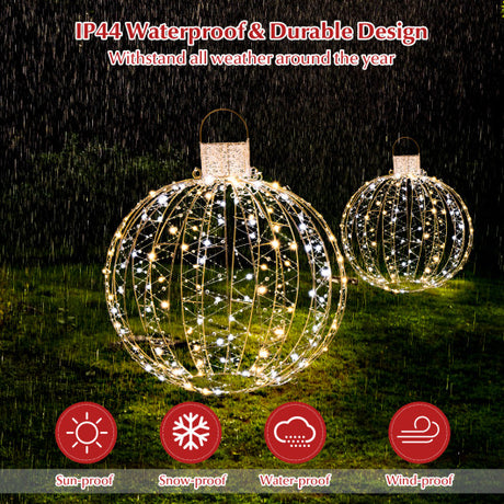 3 Pack Christmas LED Light Balls with Cable Ties and 6 Stakes-Golden