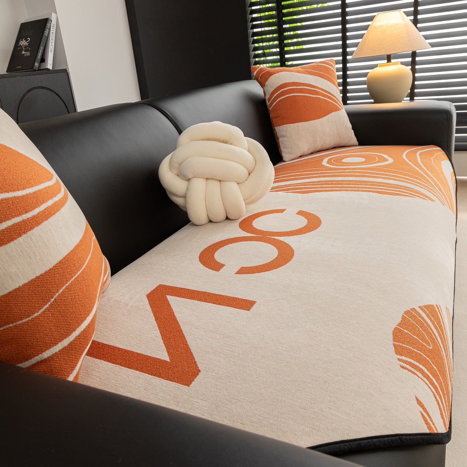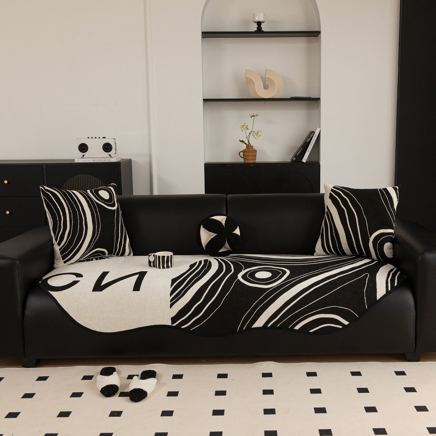 Abstract Art Sofa Cover with Wave Edge, Non Slip Couch Cover for Stylish Homes
