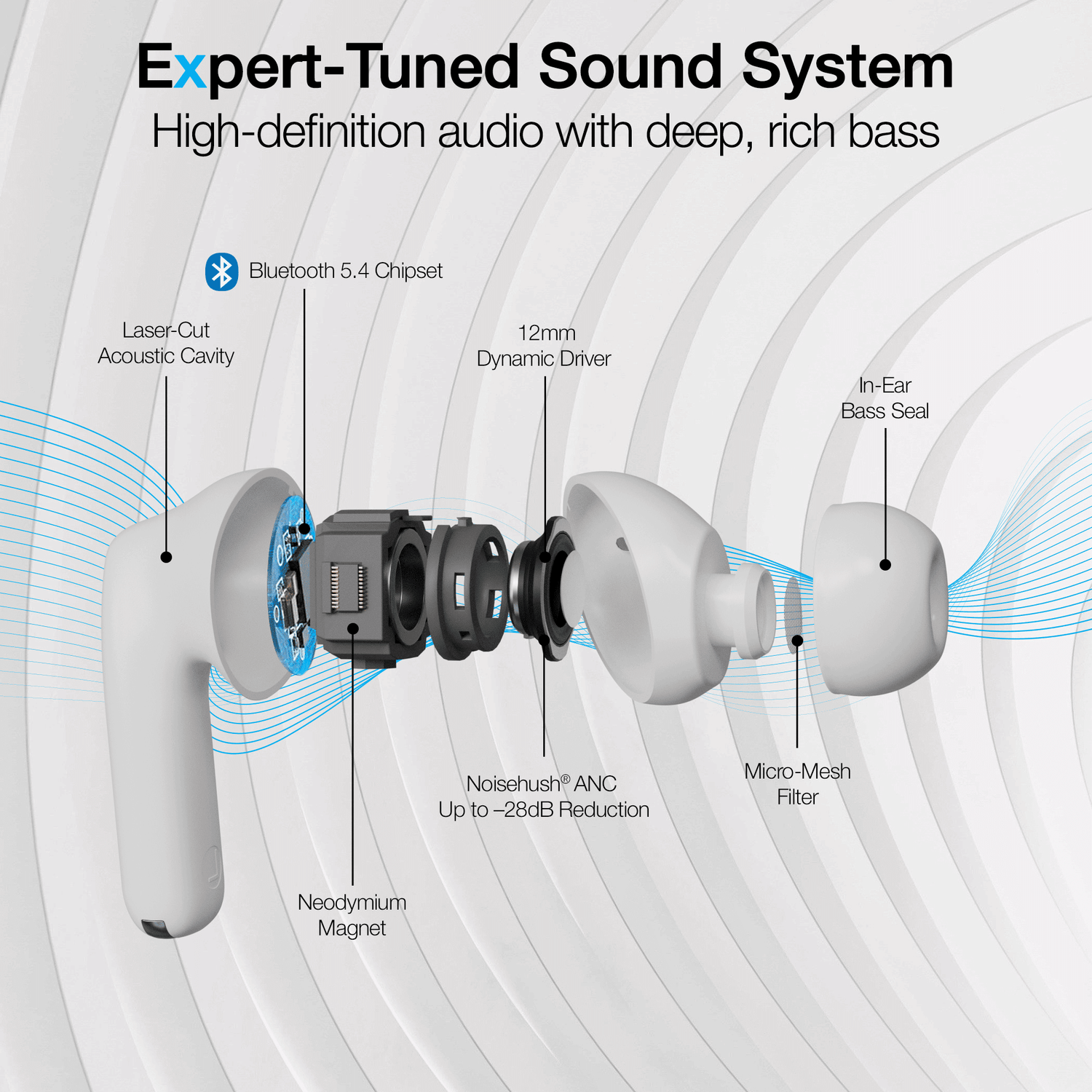 - Active Noise Cancellation (ANC): Escape distractions with advanced ANC technology. It intelligently detects and cancels ambient noise, allowing you to focus on your music, podcasts, or calls.